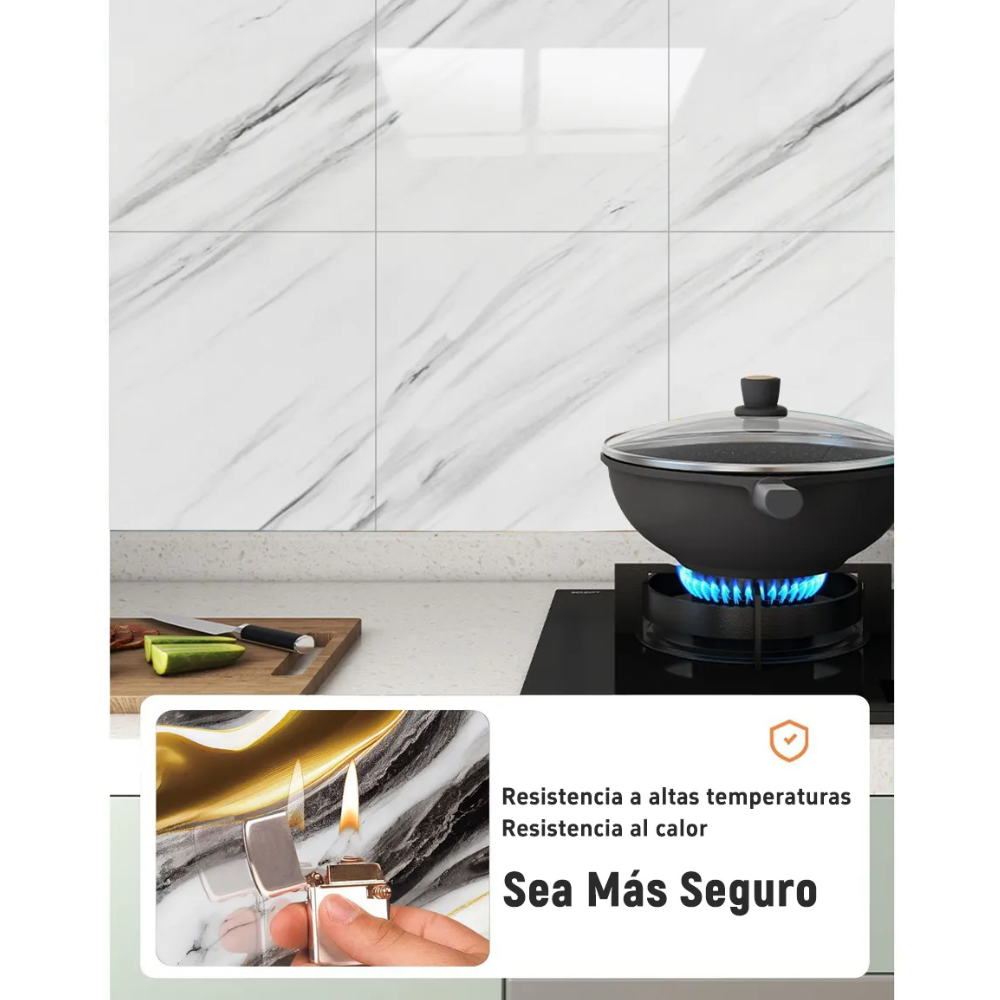 🍽️ Cocina: Perfecto para paredes cercanas a la estufa y salpicaderos de armarios. Resistente al aceite y muy fácil de limpiar.